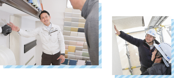 工事後の保証期間内は年に1回、毎年のお住まいの状態を見守るための定期点検・アフターフォローを行っています。