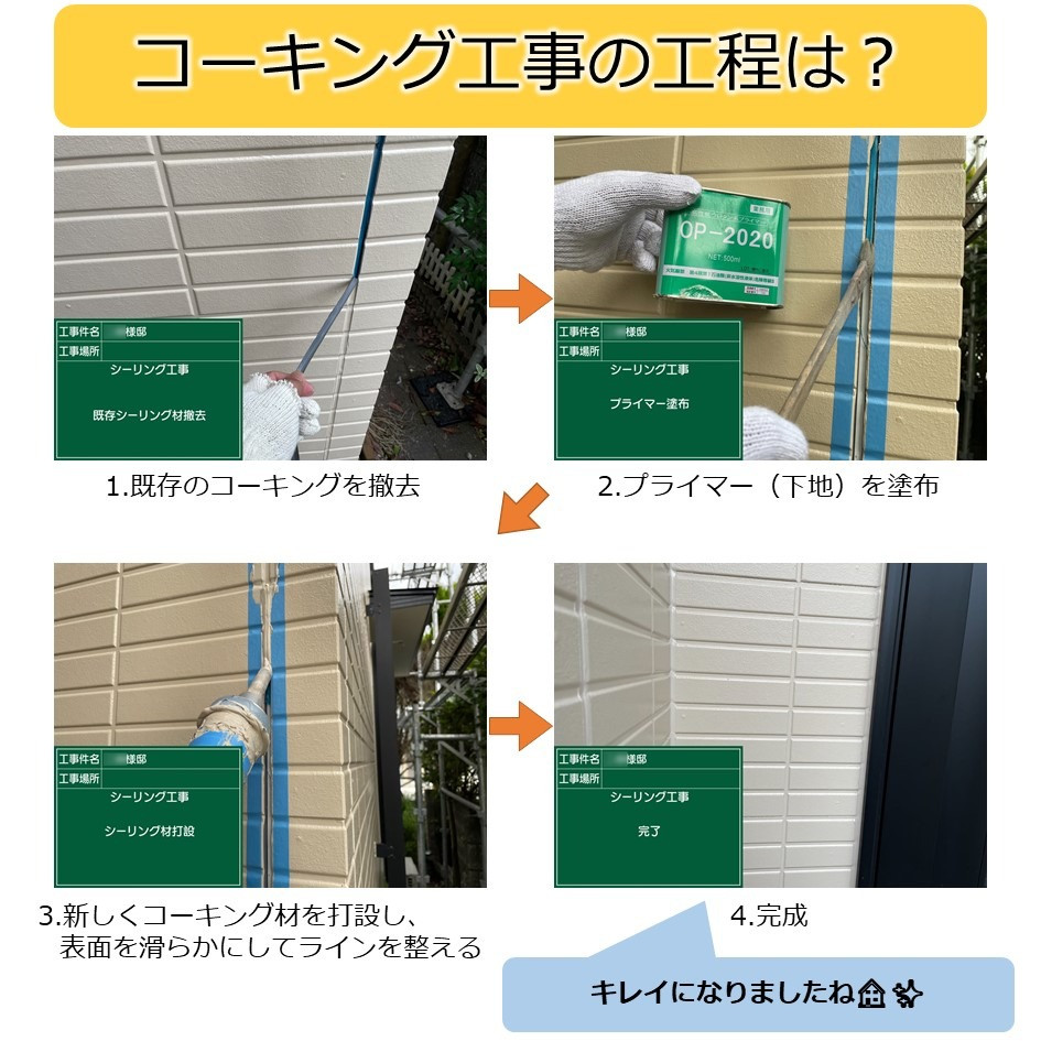過去に使用していた油性コーキング材(現在は油性コーキングの使用はなくなってきている)から「コーキング」という言葉が現在でも使用されています。