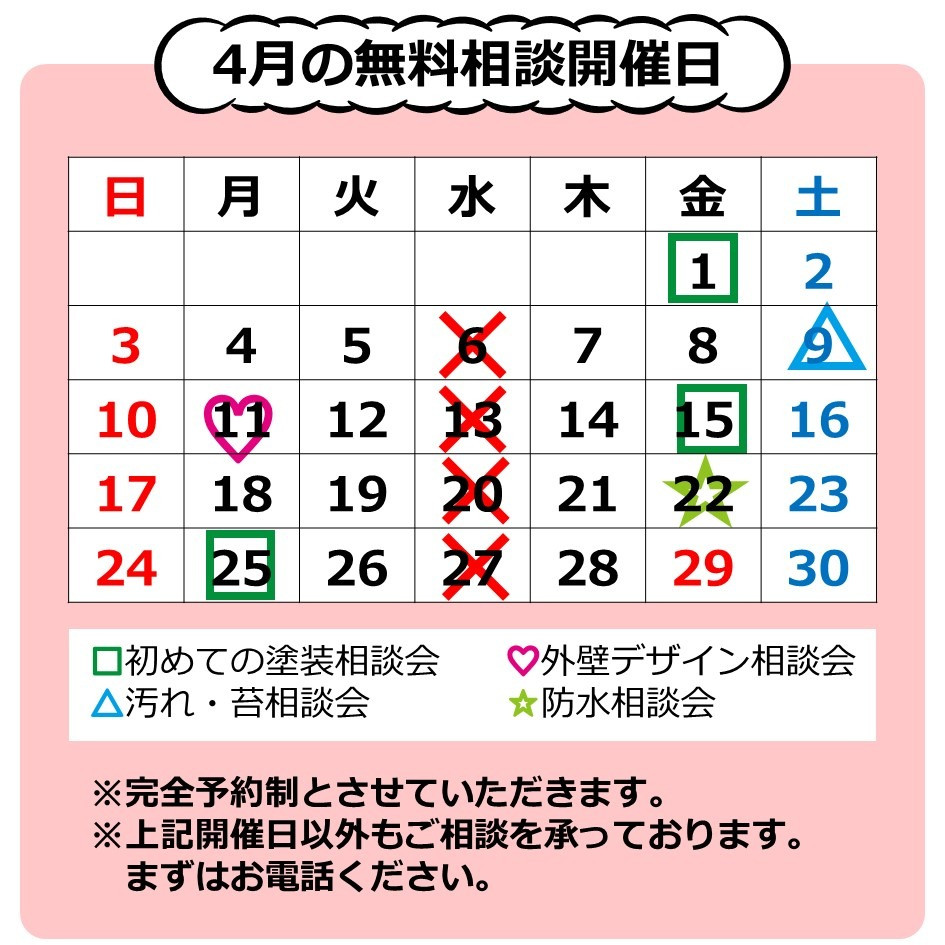 イトウ塗装では、毎月お悩み別の相談会も行っております!