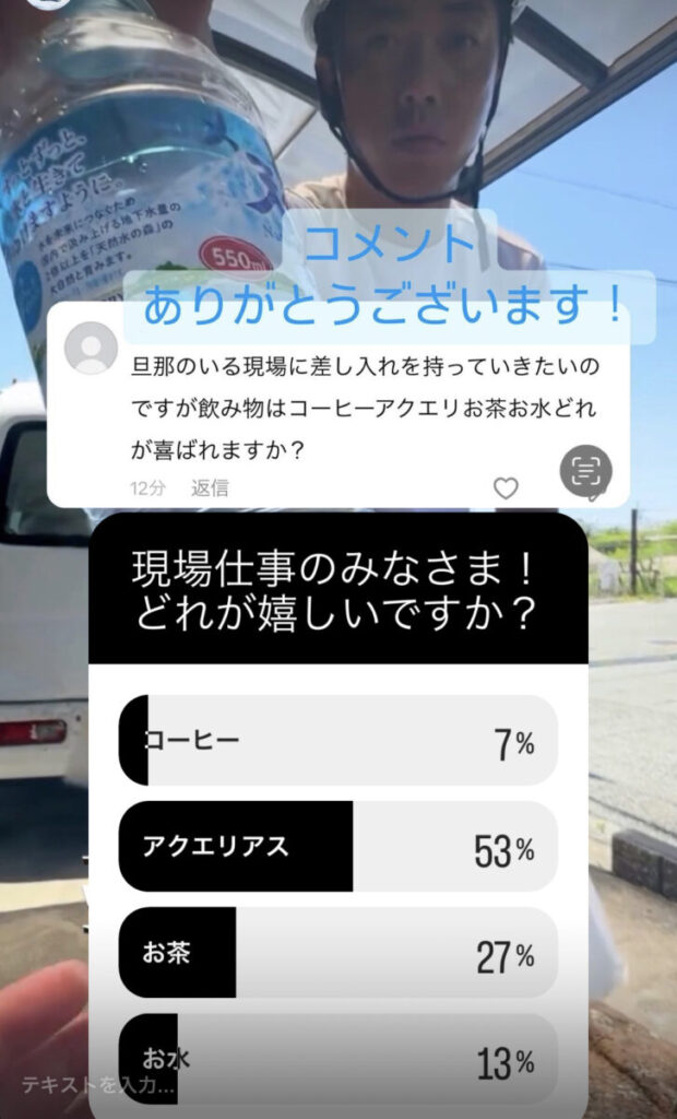 そんな職人さんに向けて、インスタグラムでもらって嬉しかった差し入れについて