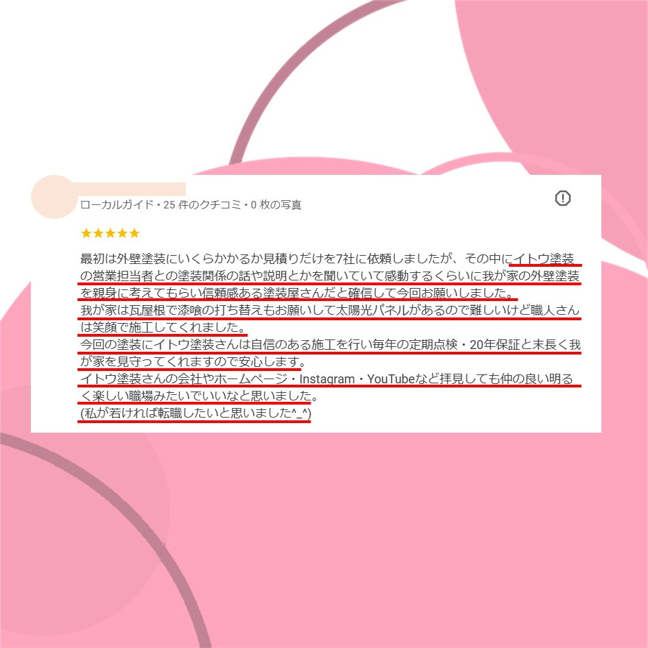 ぜひ一度イトウ塗装のホームページで過去のアンケート・口コミも御覧ください😌