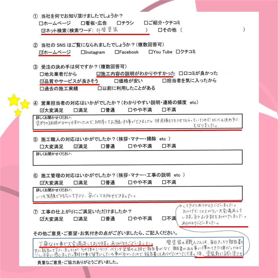 本日は、イトウ塗装で実際に施工をご依頼いただきましたお客様から頂戴しました
