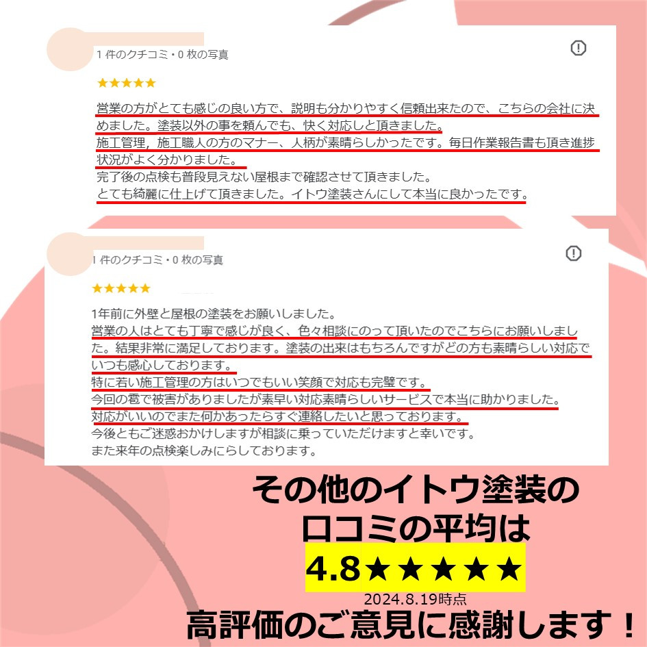 ぜひ一度イトウ塗装のホームページで過去のアンケート・口コミも御覧ください😌