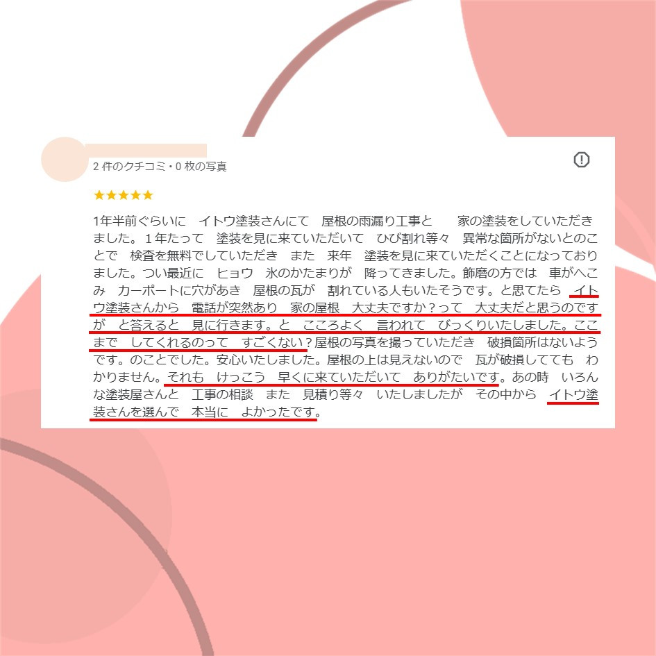イトウ塗装への口コミを御覧いただき、お客様へのリアルなお声や