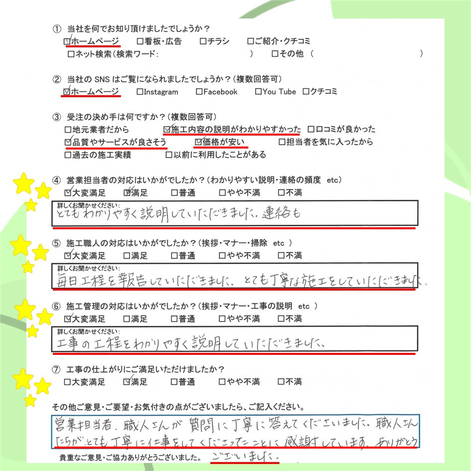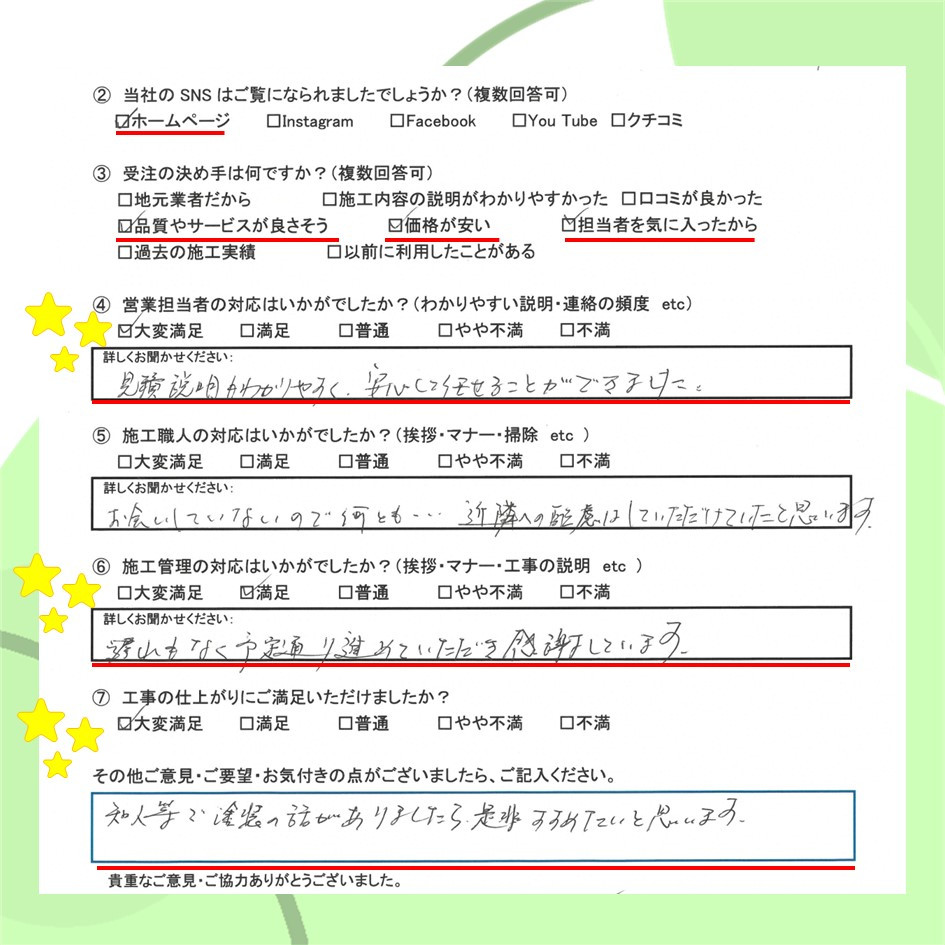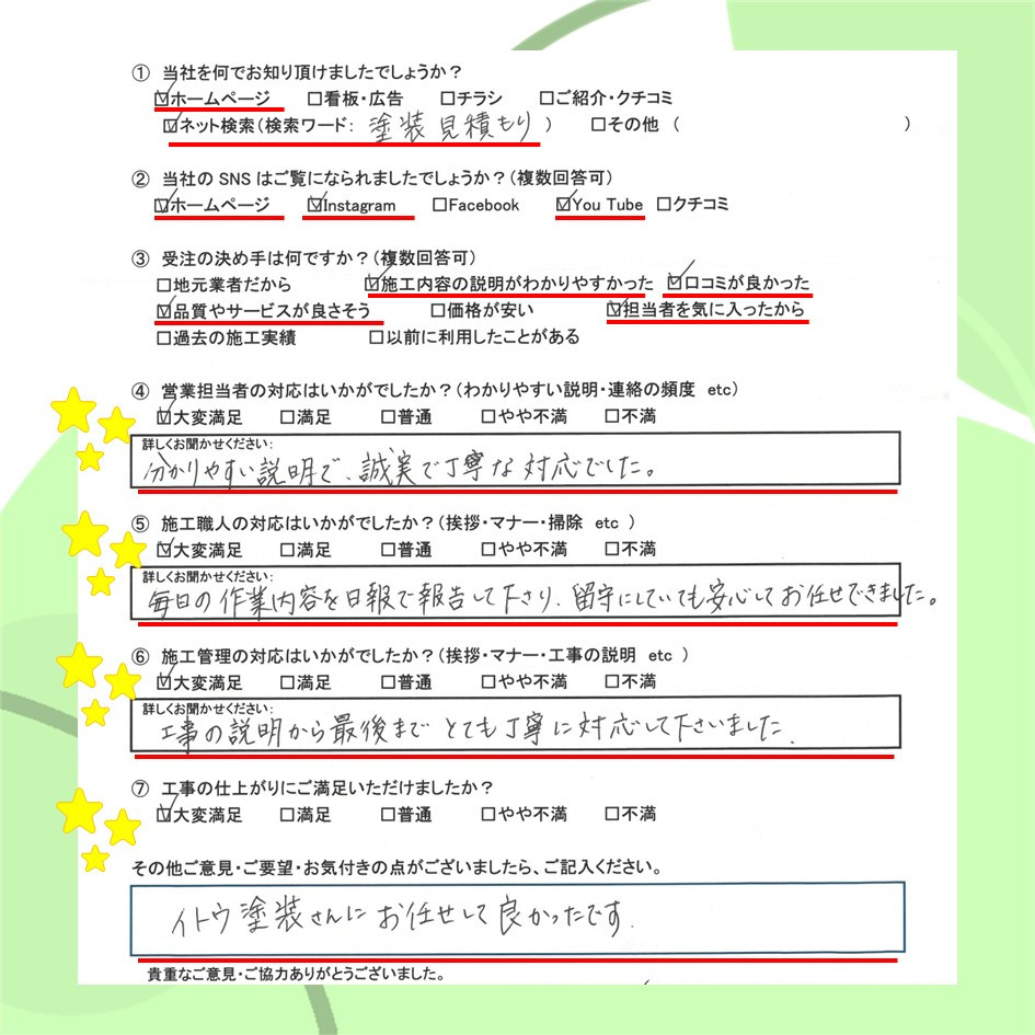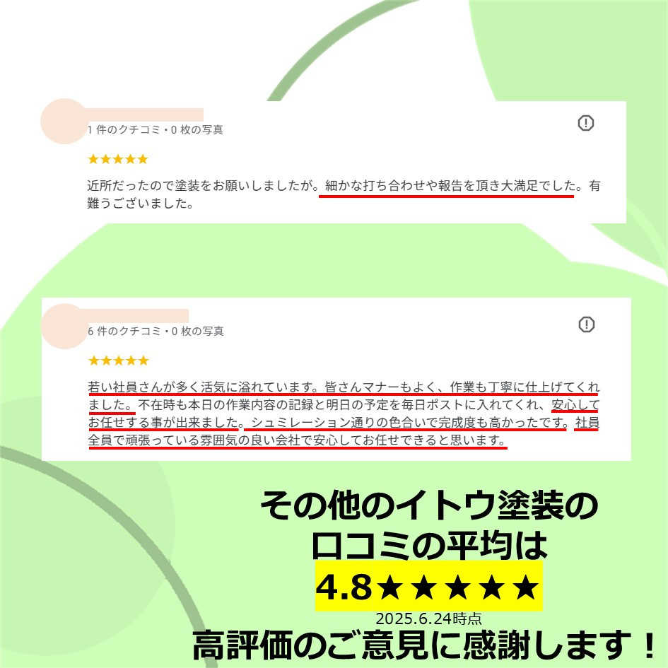 ぜひ一度イトウ塗装のホームページで過去のアンケート・口コミも御覧ください😌