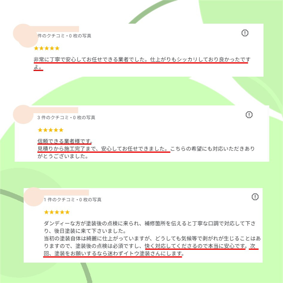 イトウ塗装への口コミを御覧いただき、お客様へのリアルなお声や
