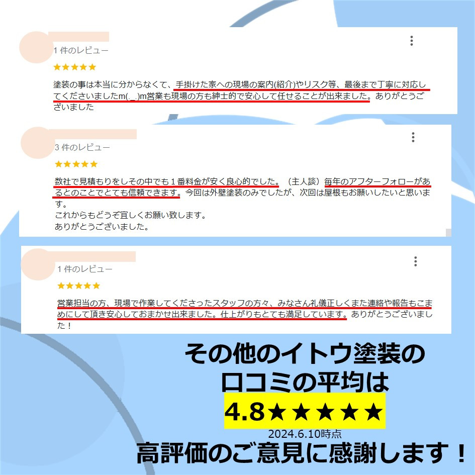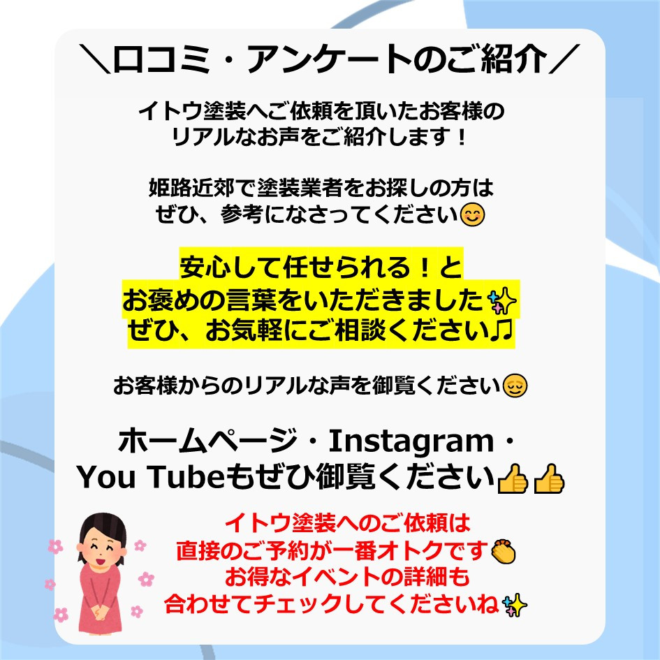 ぜひ一度イトウ塗装のホームページで過去のアンケート・口コミも御覧ください😌