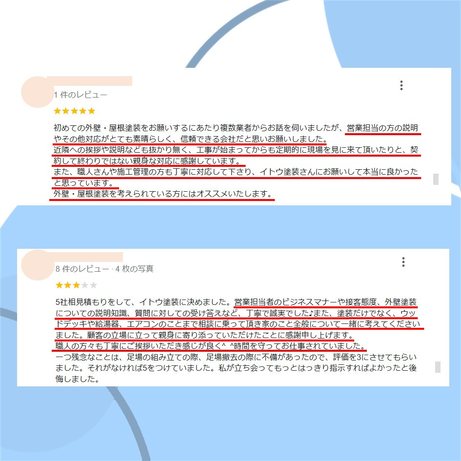 イトウ塗装への口コミを御覧いただき、お客様へのリアルなお声や