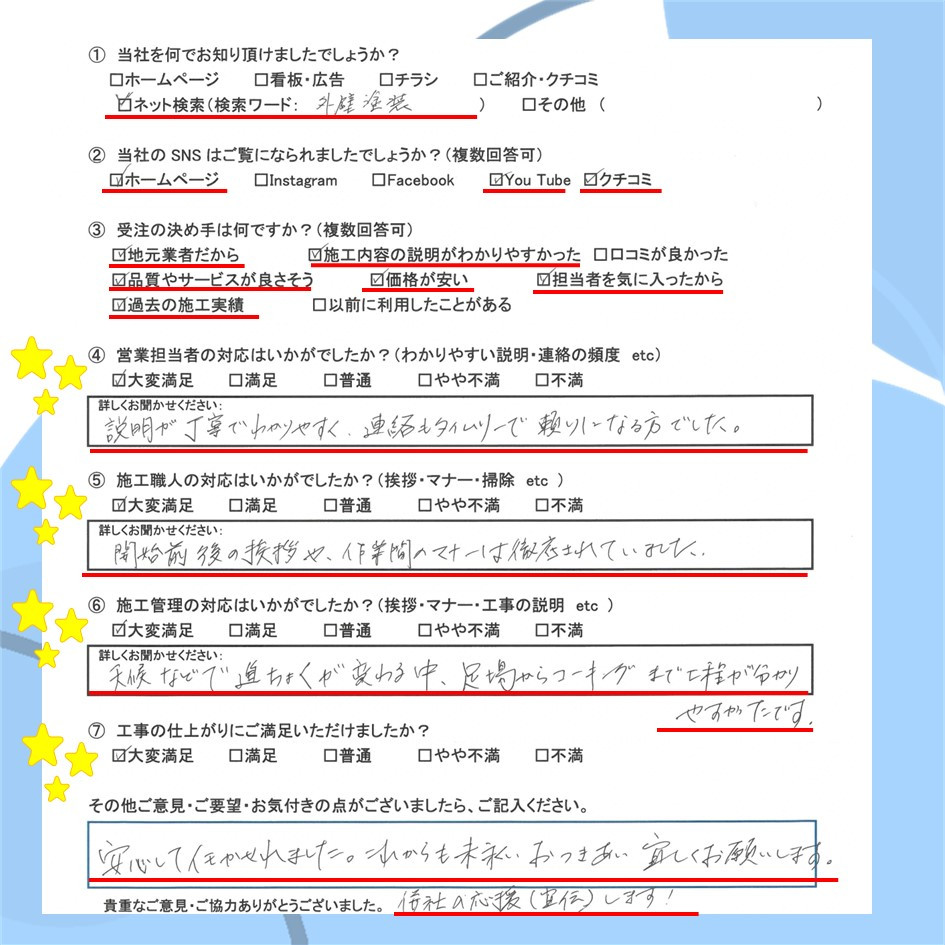 本日は、イトウ塗装で実際に施工をご依頼いただきましたお客様から頂戴しました