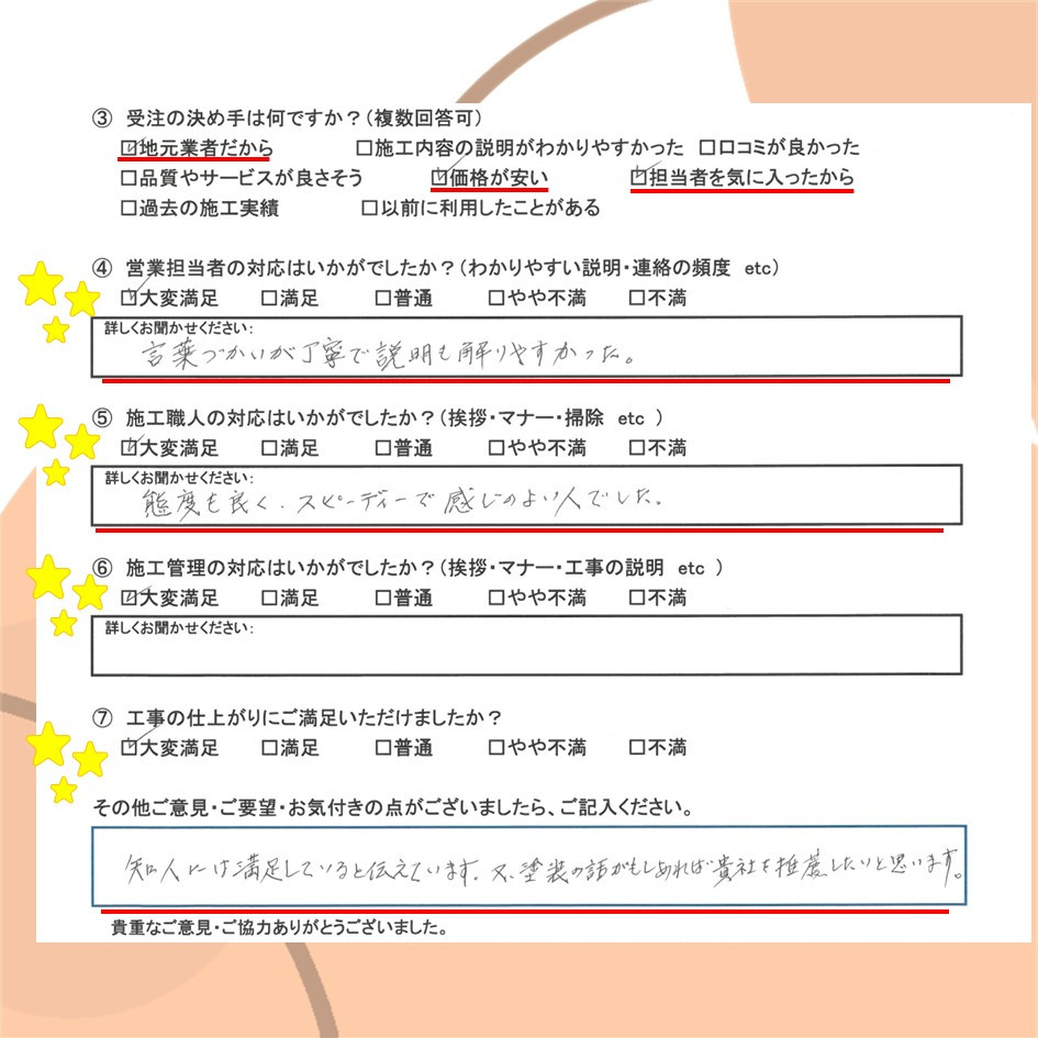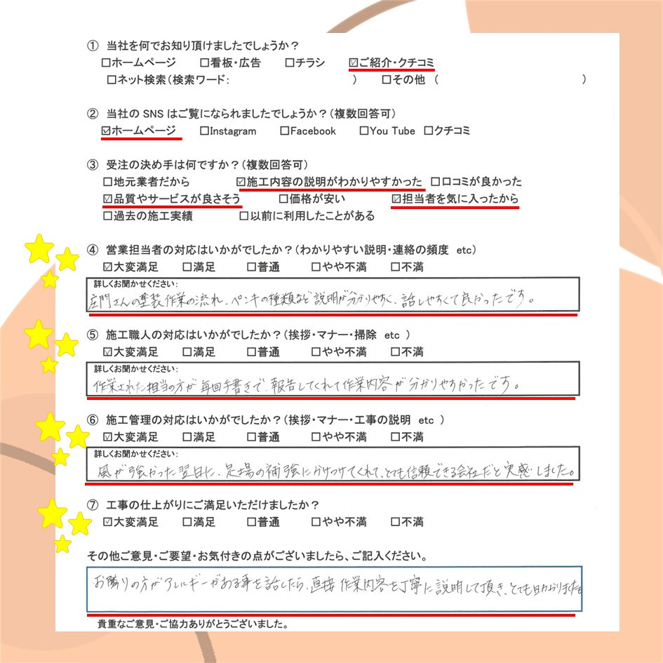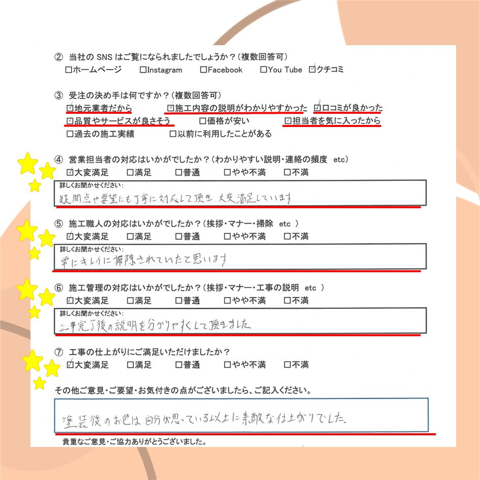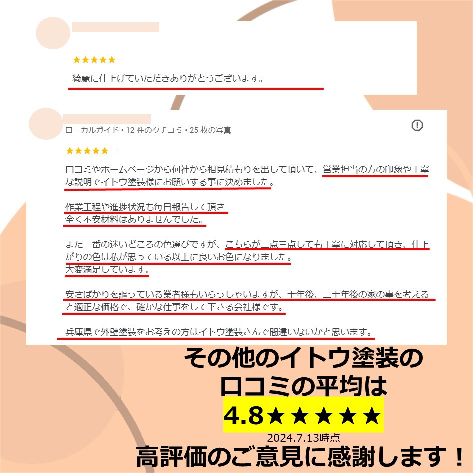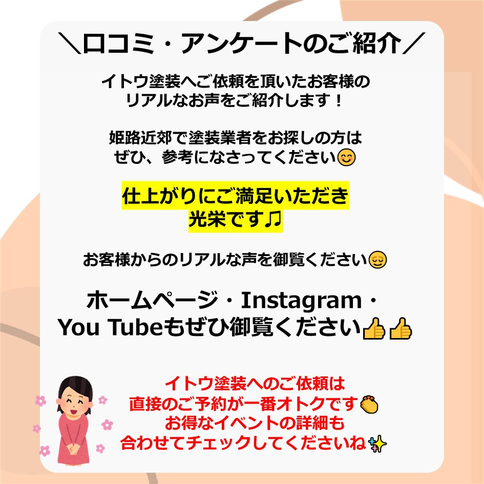 ぜひ一度イトウ塗装のホームページで過去のアンケート・口コミも御覧ください😌