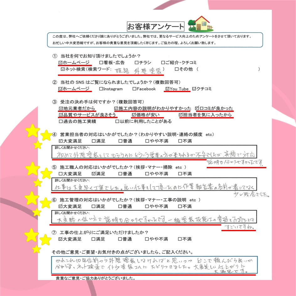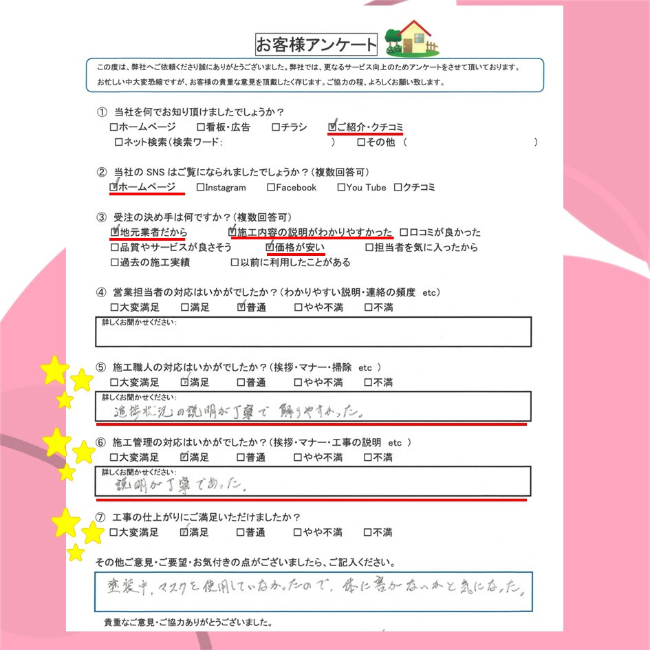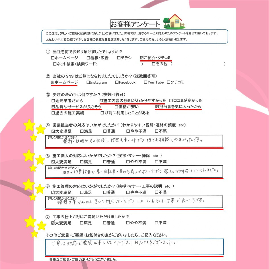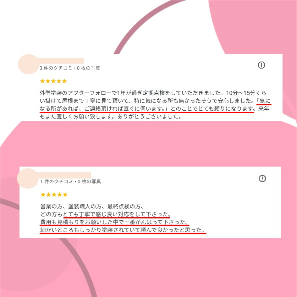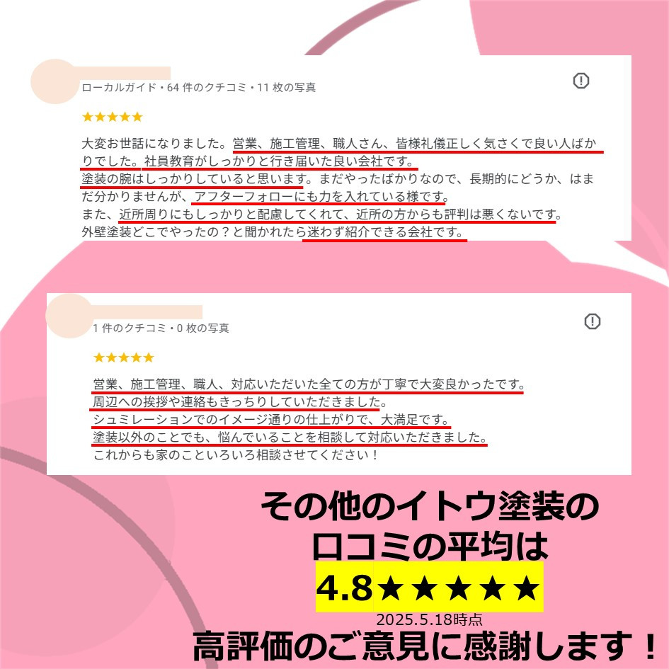 ぜひ一度イトウ塗装のホームページで過去のアンケート・口コミも御覧ください😌