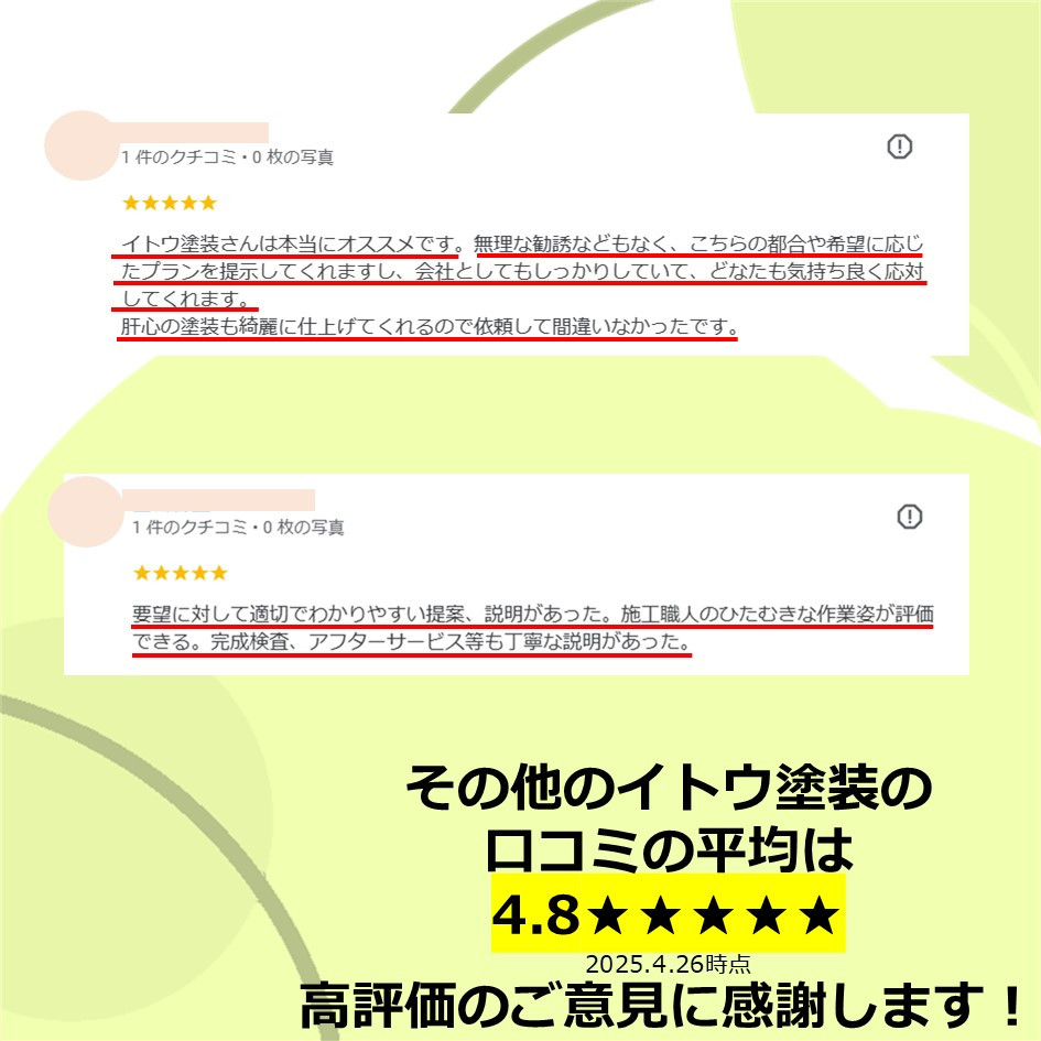 ぜひ一度イトウ塗装のホームページで過去のアンケート・口コミも御覧ください😌