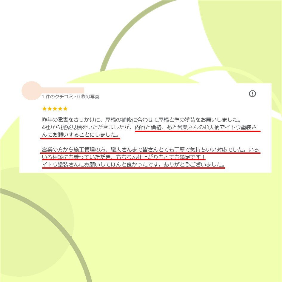 イトウ塗装への口コミを御覧いただき、お客様へのリアルなお声や