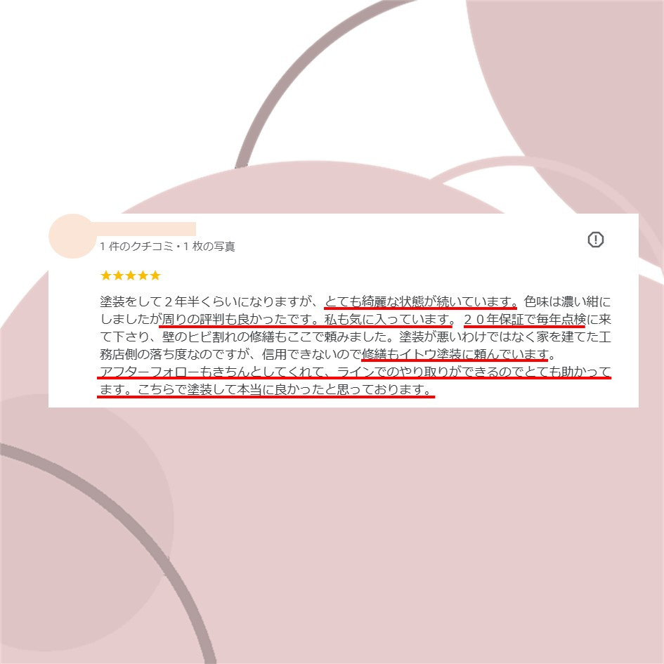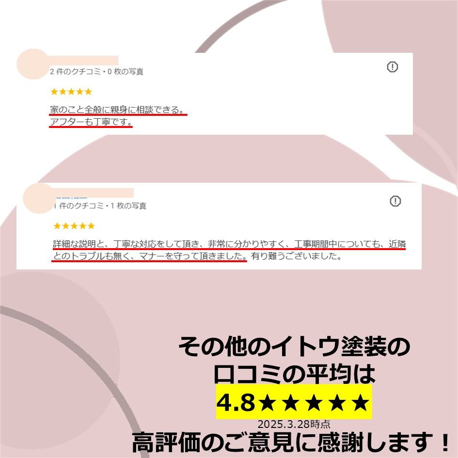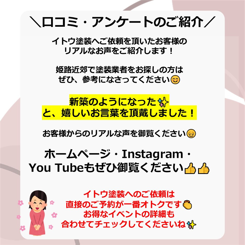 ぜひ一度イトウ塗装のホームページで過去のアンケート・口コミも御覧ください😌