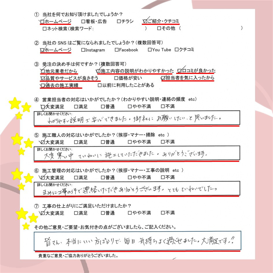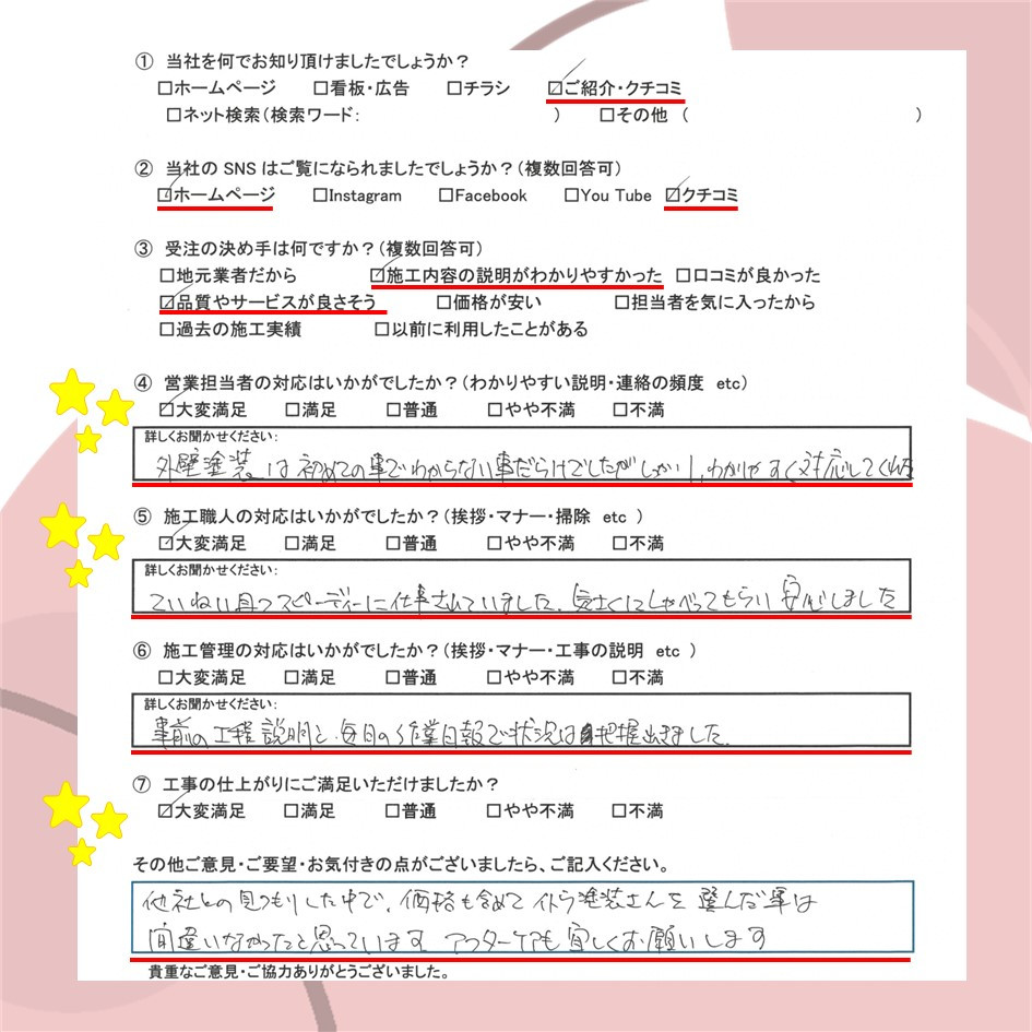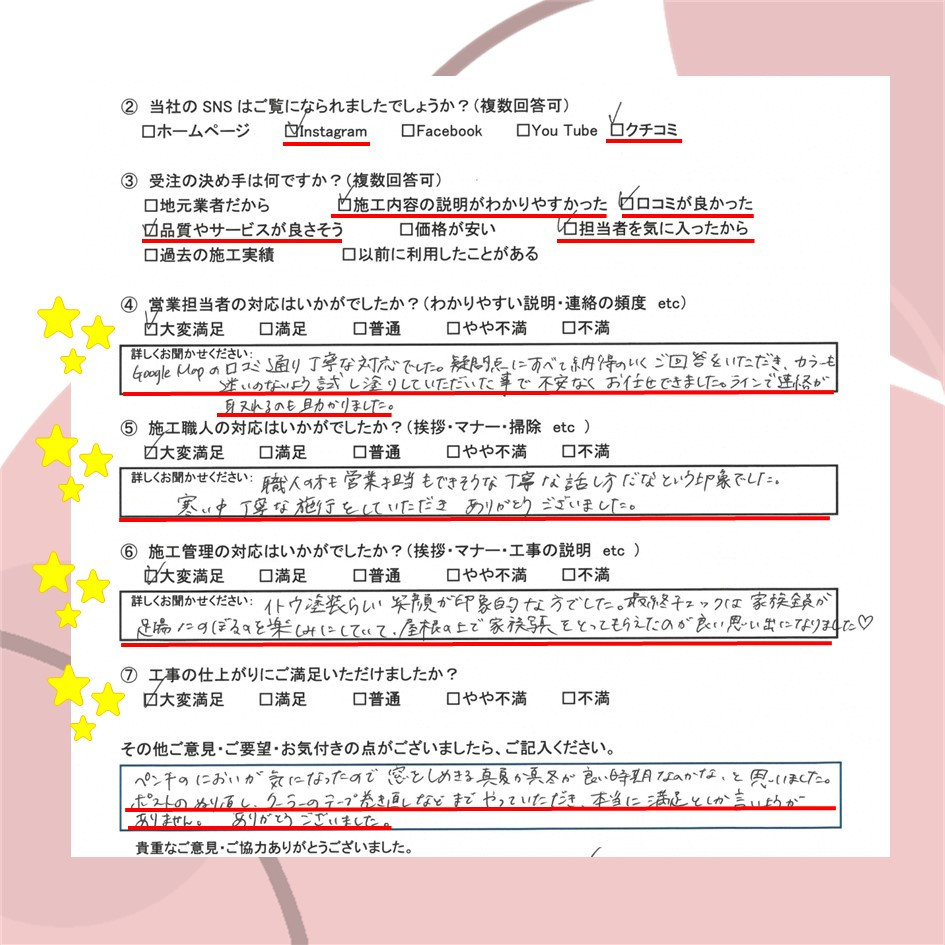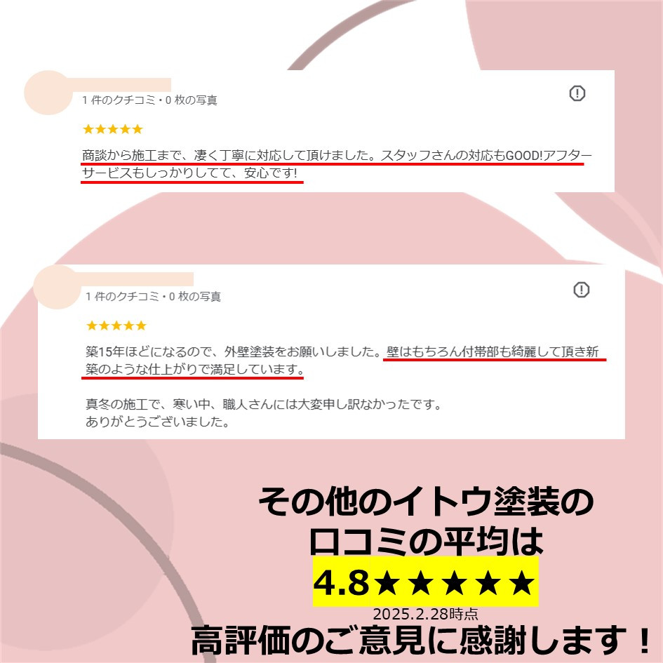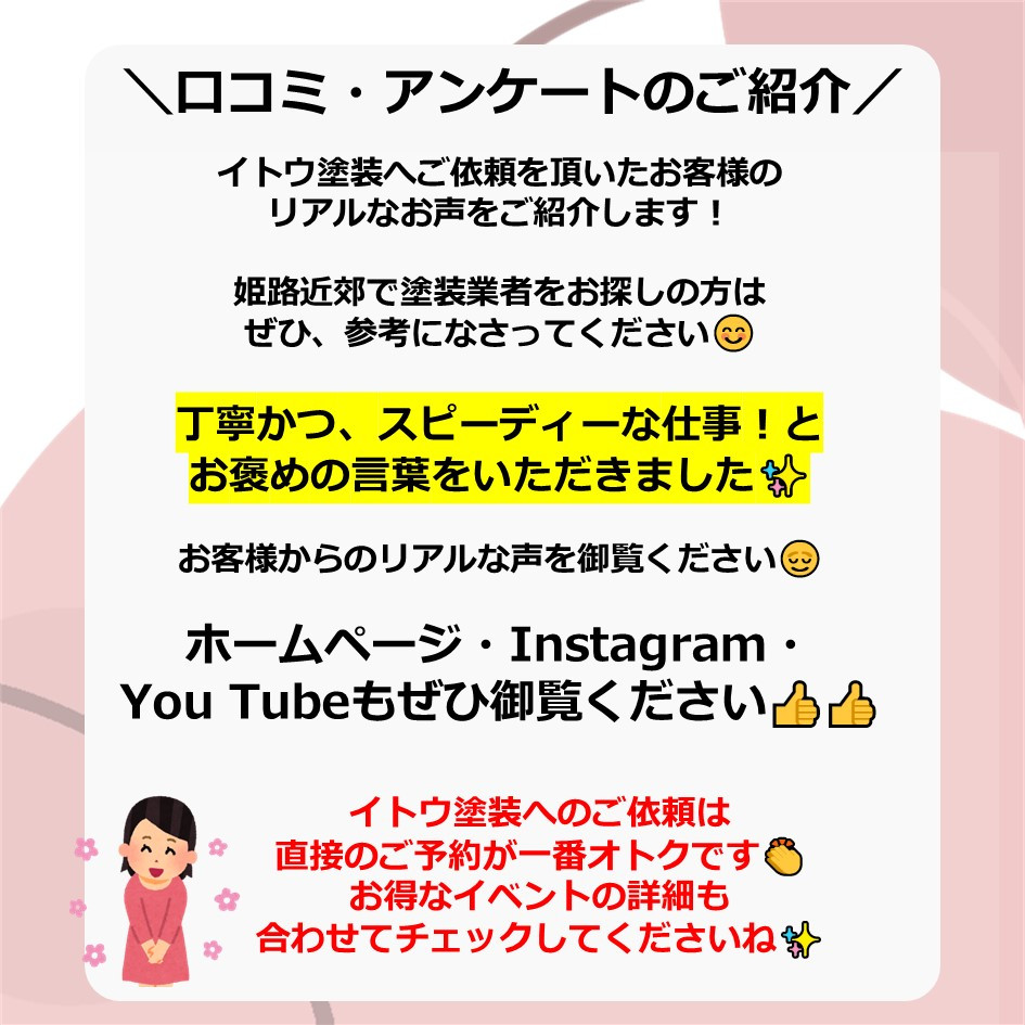 ぜひ一度イトウ塗装のホームページで過去のアンケート・口コミも御覧ください😌