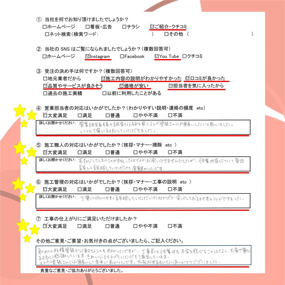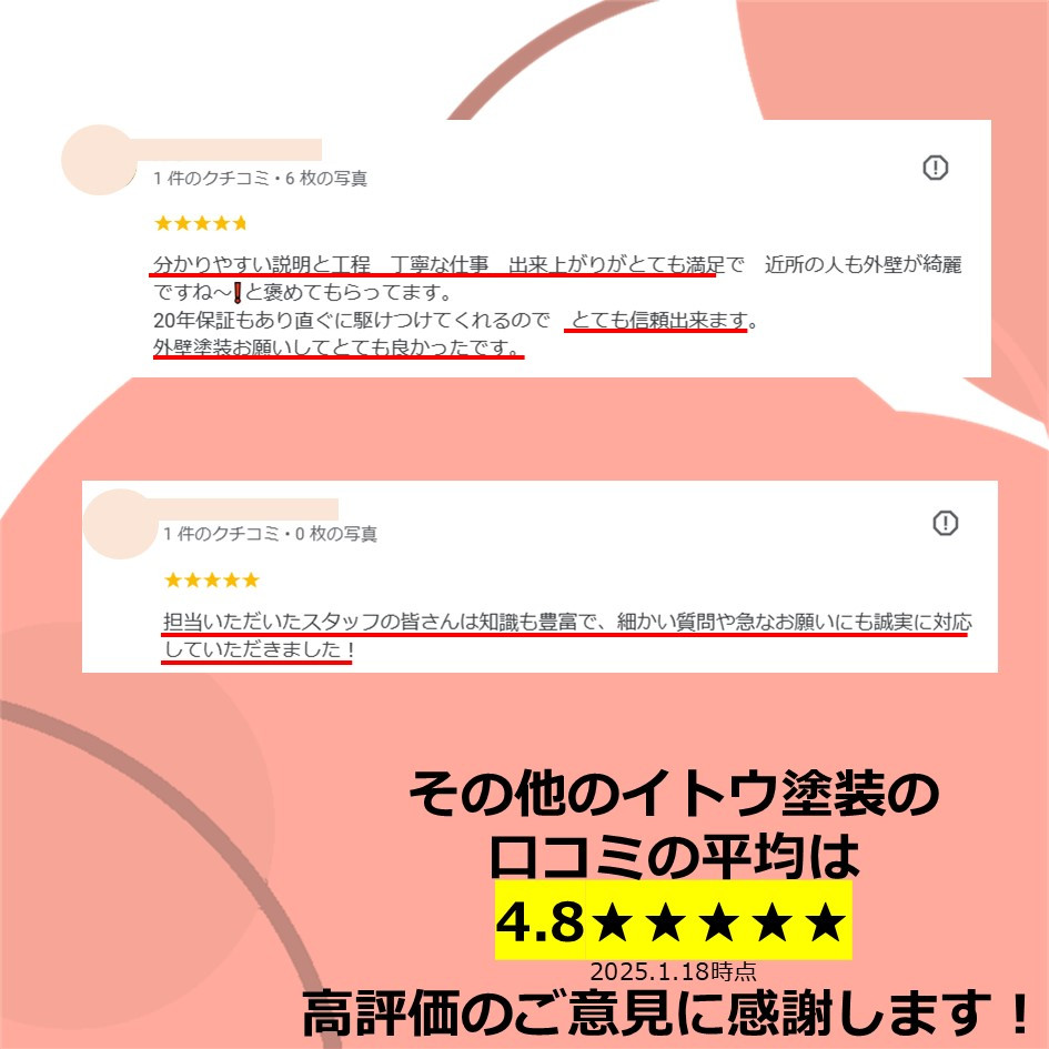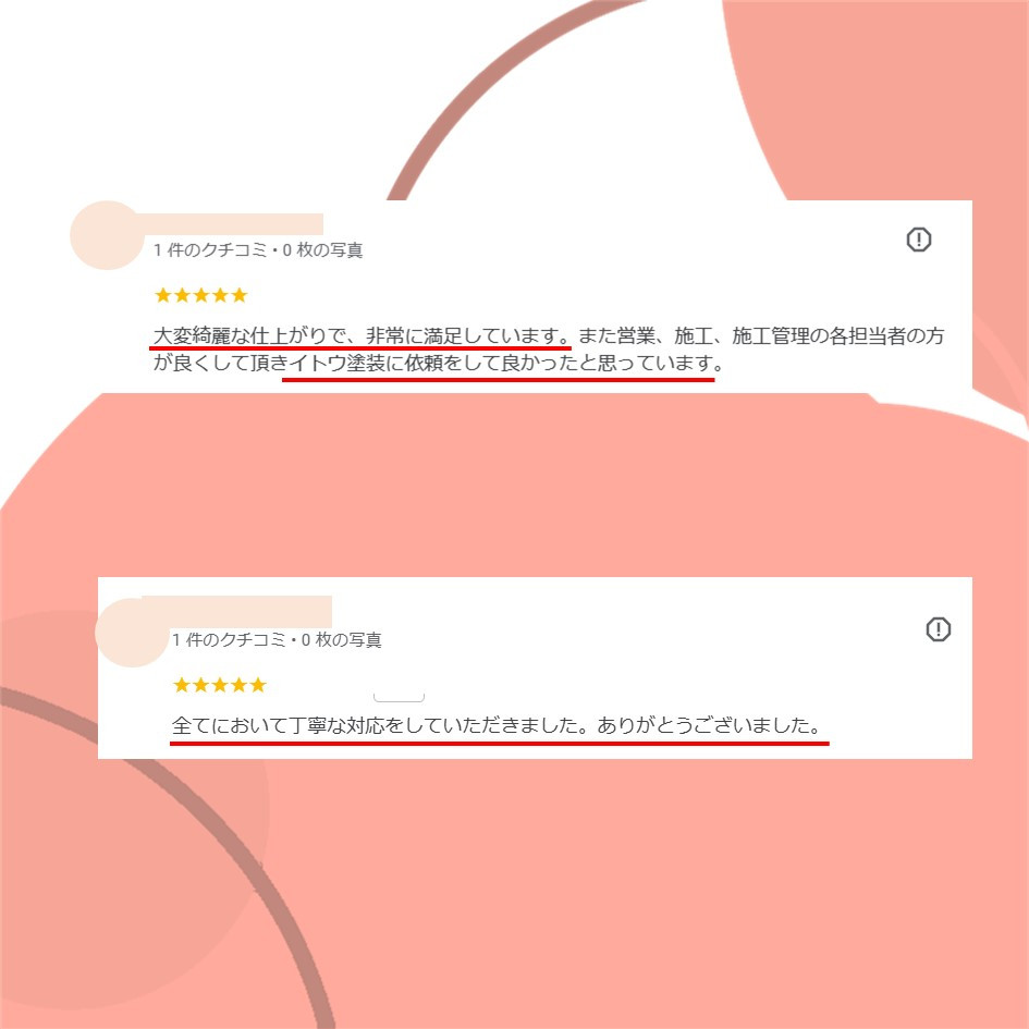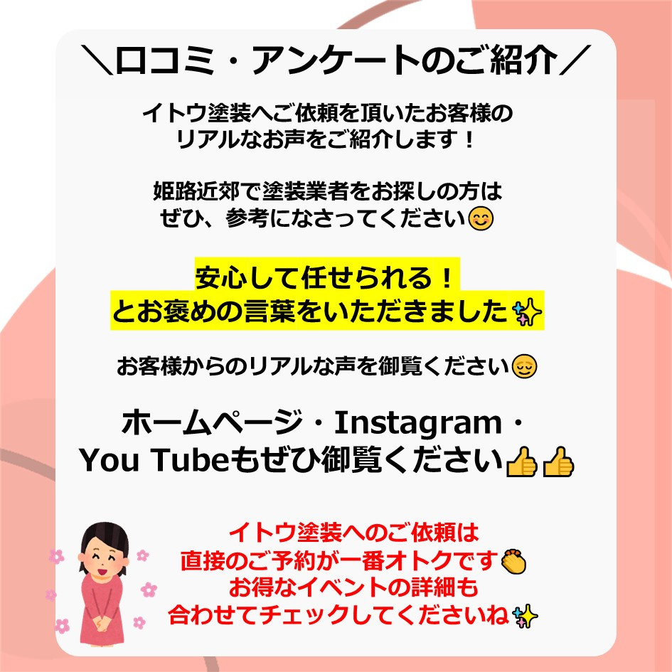 ぜひ一度イトウ塗装のホームページで過去のアンケート・口コミも御覧ください😌