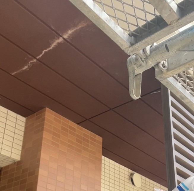 先に軒天井の塗装をしてしまうと、割れたベランダのひび割れから水が入ってしまいます😔