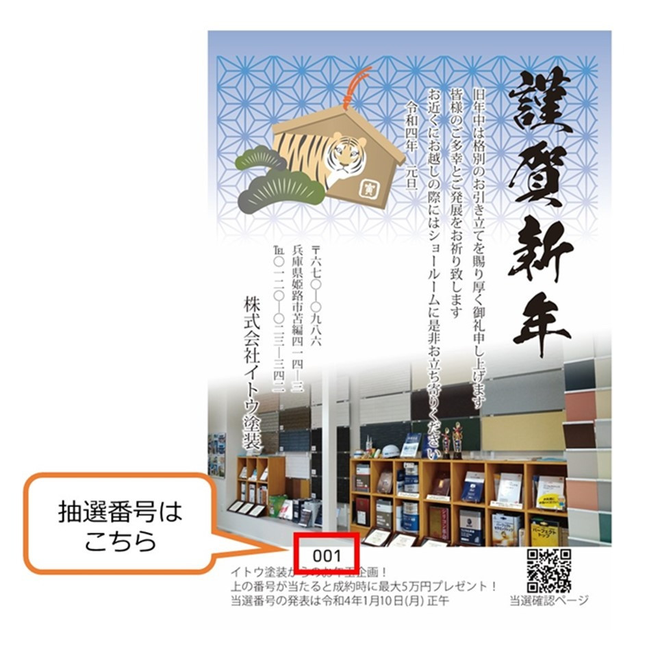 イトウ塗装からお届け致しました年賀状の裏面に、抽選番号を掲載しております。