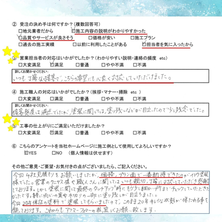 イトウ塗装の過去のアンケート・口コミをご参考頂けますと幸いです😊