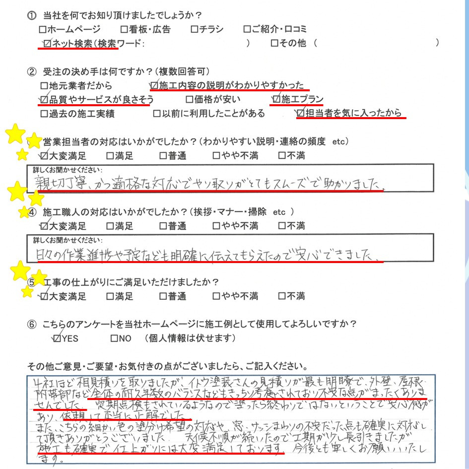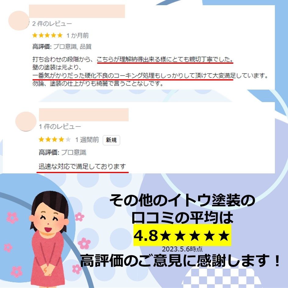 ぜひ一度イトウ塗装のホームページで過去のアンケート・口コミも御覧ください😌