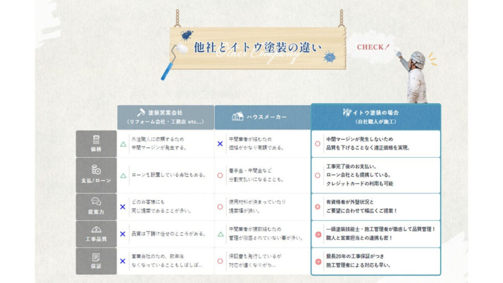 イトウ塗装と工務店さん・ハウスメーカーさんと違いはコチラ↓↓↓