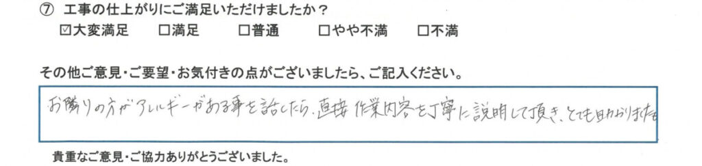 先日、お手伝いさせて頂いた施工主様から嬉しいアンケートをご記入いただけましたのでご紹介させて頂きます!