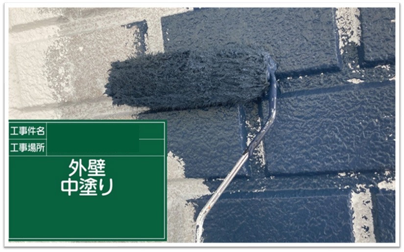 中塗りは、下塗り材と上塗り材の密着力を上げる役割があります。