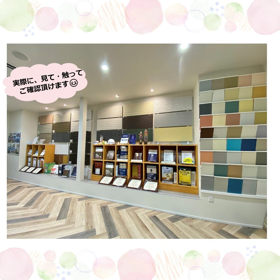 ショールームには、たくさんの色見本と、壁の種類豊富な見本板をご用意させて頂いております!