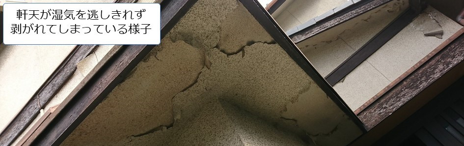 軒天は家全体の湿気を逃がす役割を持っているので、樋などに使用するペンキを使ってしまうと使ったペンキが膨らんで剥がれてしまう場合があります💦
