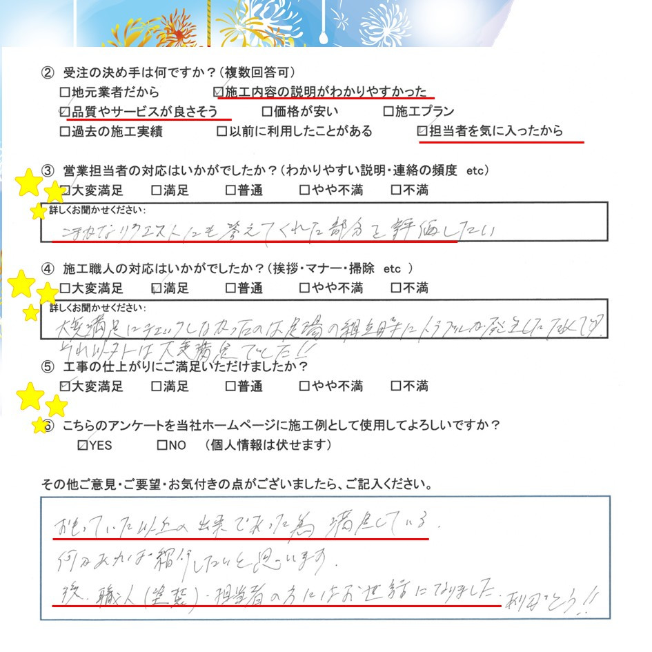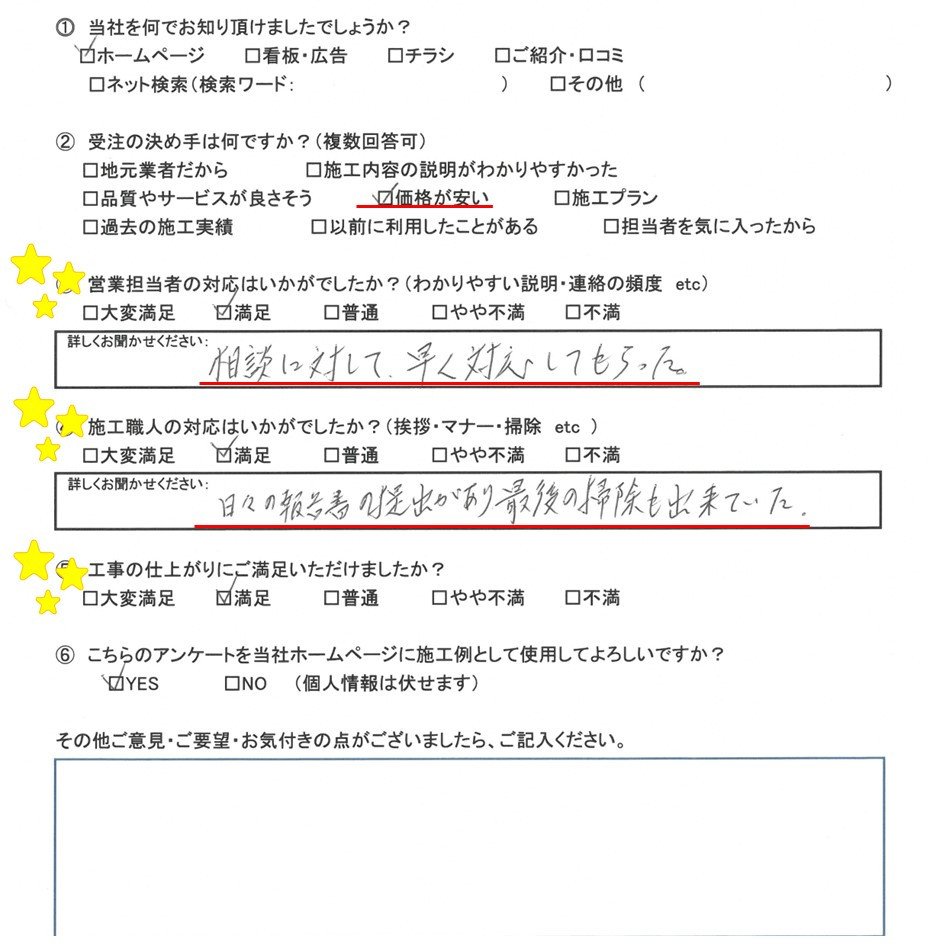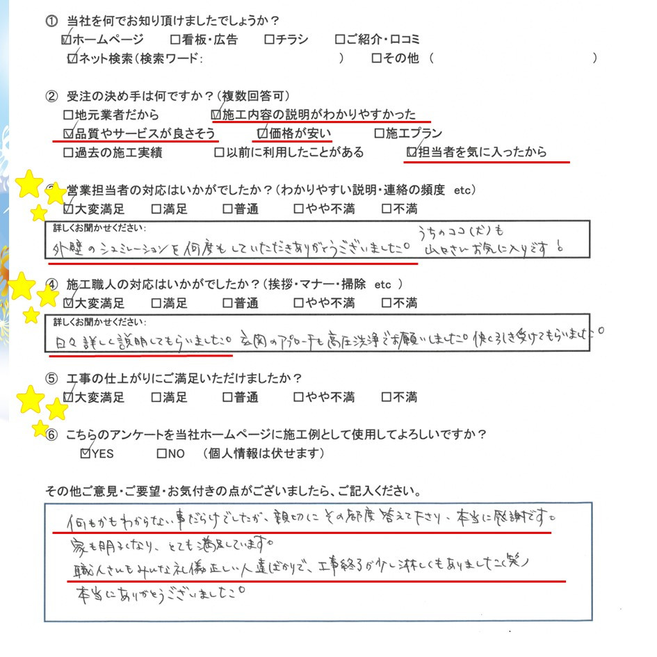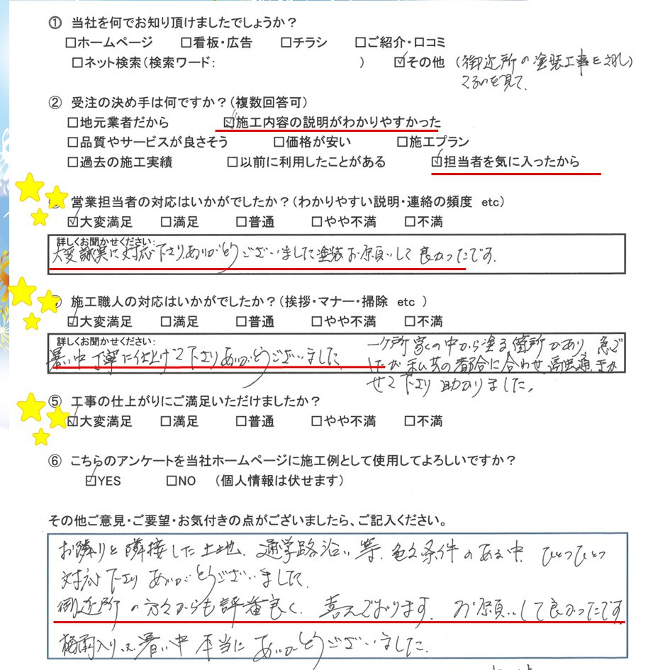 ぜひ、お客様から頂いたアンケート・口コミも塗装選びに参考になさってください!!