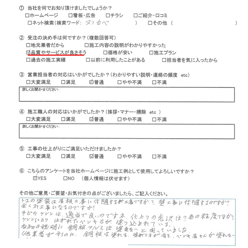 今回の口コミや、アンケートで高評価いただいいておりますが、イトウ塗装ではお客様に安心して工事をお任せいただけるように