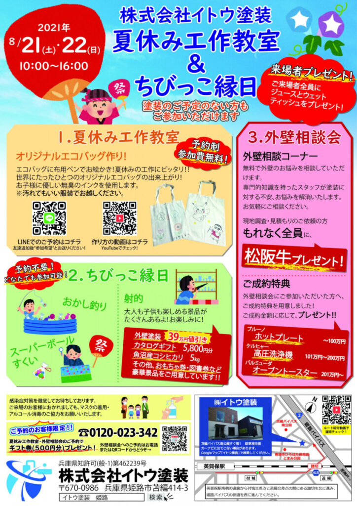 7月24日(土).25日(日)の2日間にて開催致しました夏休み工作教室&ちびっこ縁日イベントですが大盛況の中開催を終了致しました🎉