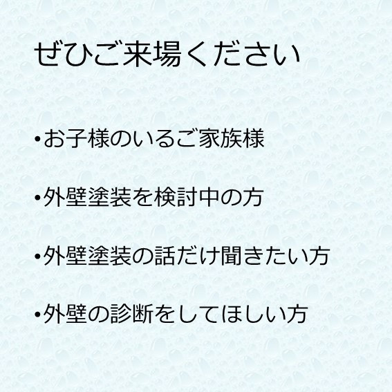今回のイベントは、外壁相談をご希望されない方のご参加も可能です^_^