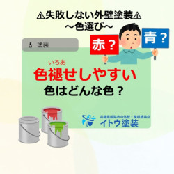 こんにちは! 姫路外壁塗装屋根塗装のイトウ塗装です! 本日は、失敗しない色選びのポイント⚠ “色褪せ(いろあせ)しにくい色について“ご紹介させていただきます! 色褪せしやすい色についてはコチラをご覧ください こちらの、記事は動画でもご覧いただけ... -