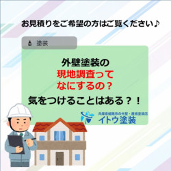 みなさん、こんにちは! 姫路外壁塗装屋根塗装のイトウ塗装です! 外壁屋根塗装工事を依頼するときによく聞く「現地調査」ってなんのことかご存知ですか? 今回はその疑問と、よくある質問についてお答え致します! こちらの、記事は動画でもご覧いただけ... -