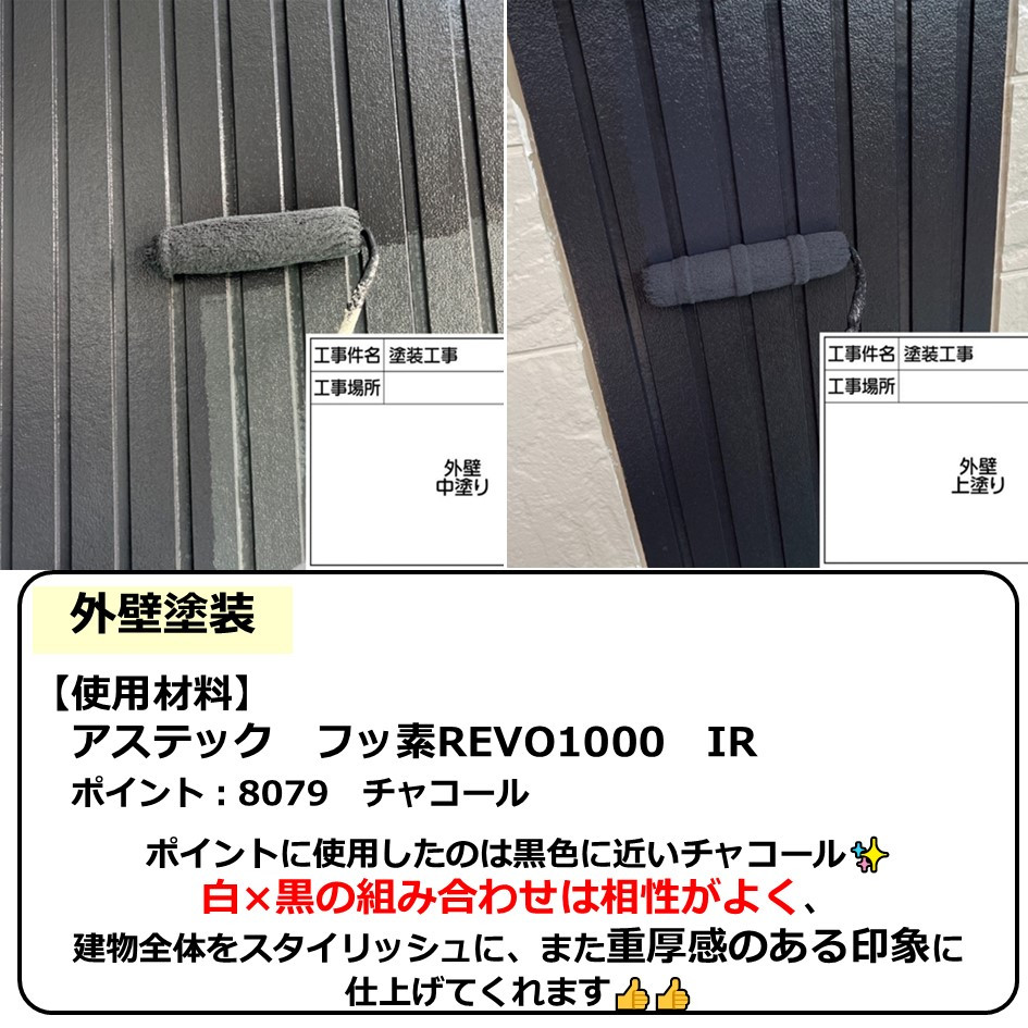 白×黒の組み合わせは相性がよく、建物全体をスタイリッシュに、また重厚感のある印象に仕上げてくれます👍️👍️