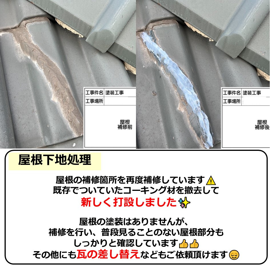 屋根の塗装はありませんが、補修を行い、普段見ることのない屋根部分もしっかりと確認しています👍️👍️