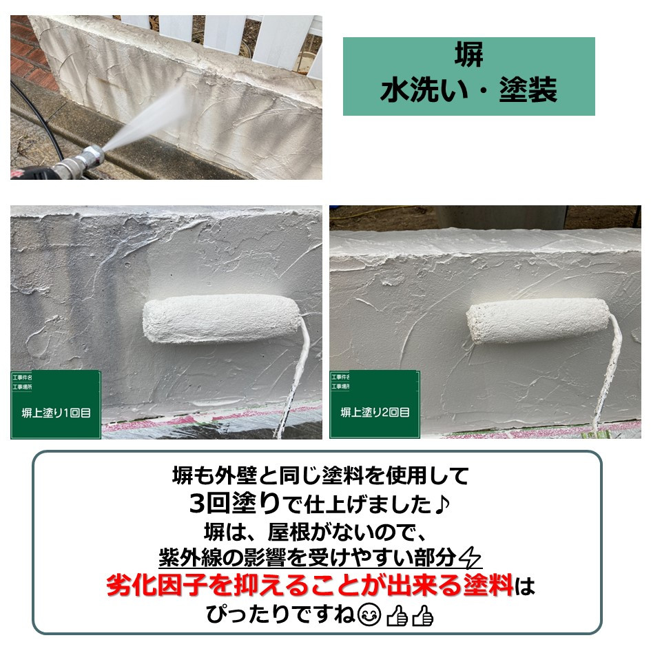 塀も外壁と同じ塗料を使用して3回塗りで仕上げました♪