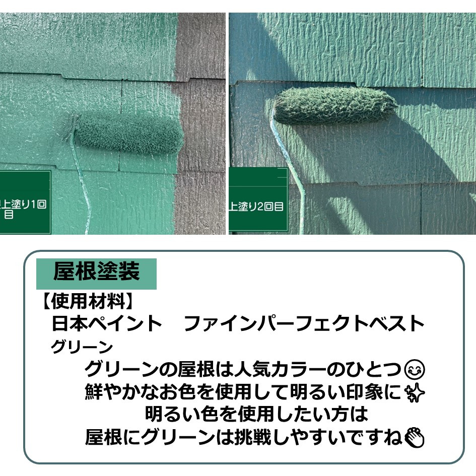 屋根に使用したグリーンは人気カラーのひとつです😊