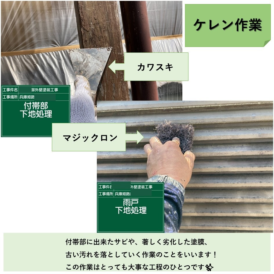 外壁塗装の前の大事な下地処理ケレン作業も丁寧に行いました!