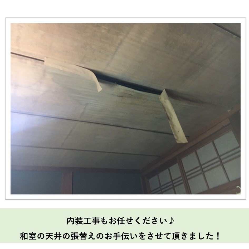 合わせて、内装改修工事の「和室天井張替え」・「波板張替え」・「屋根の屋根葺き替え」と、おうちのメンテナンスをお任せ頂きました