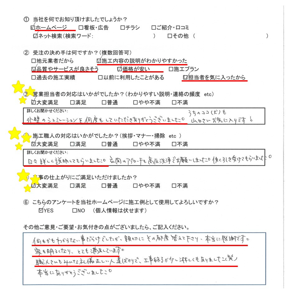 お客様からも大満足なアンケートを頂きましたのでご紹介させて頂きます!
