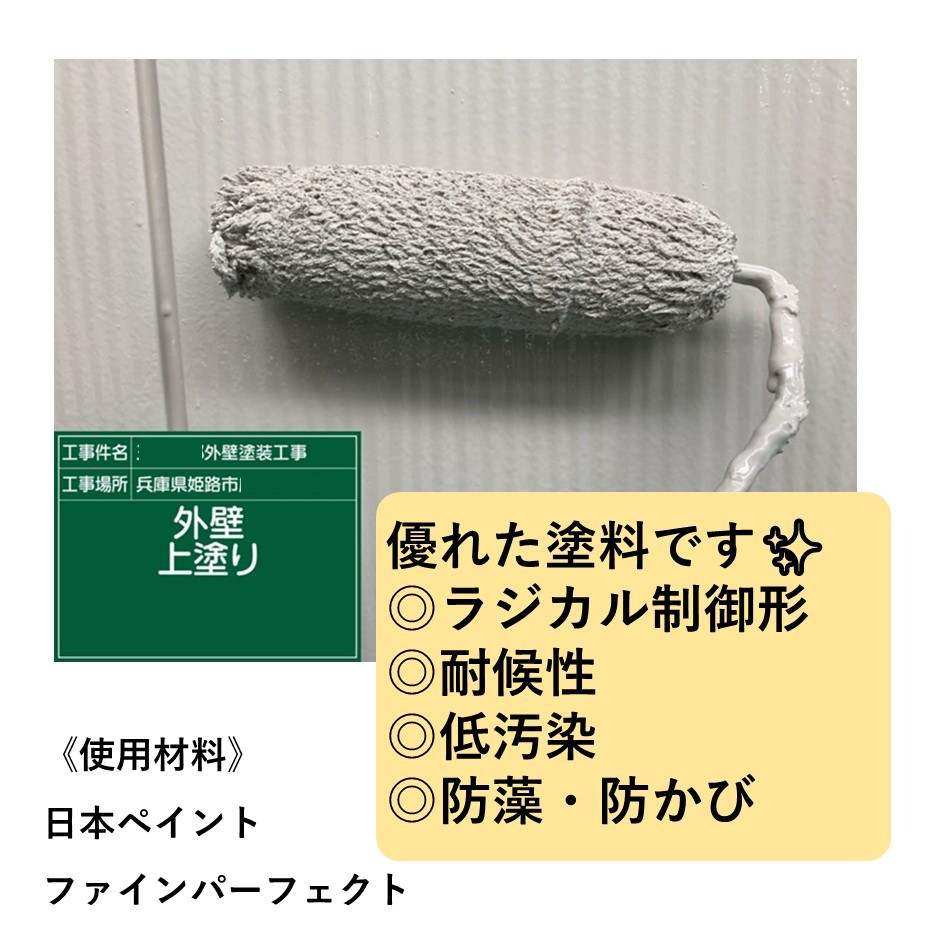 兵庫県姫路市で「日本ペイント ファインパーフェクトトップ」を使用した施工物件の紹介です。