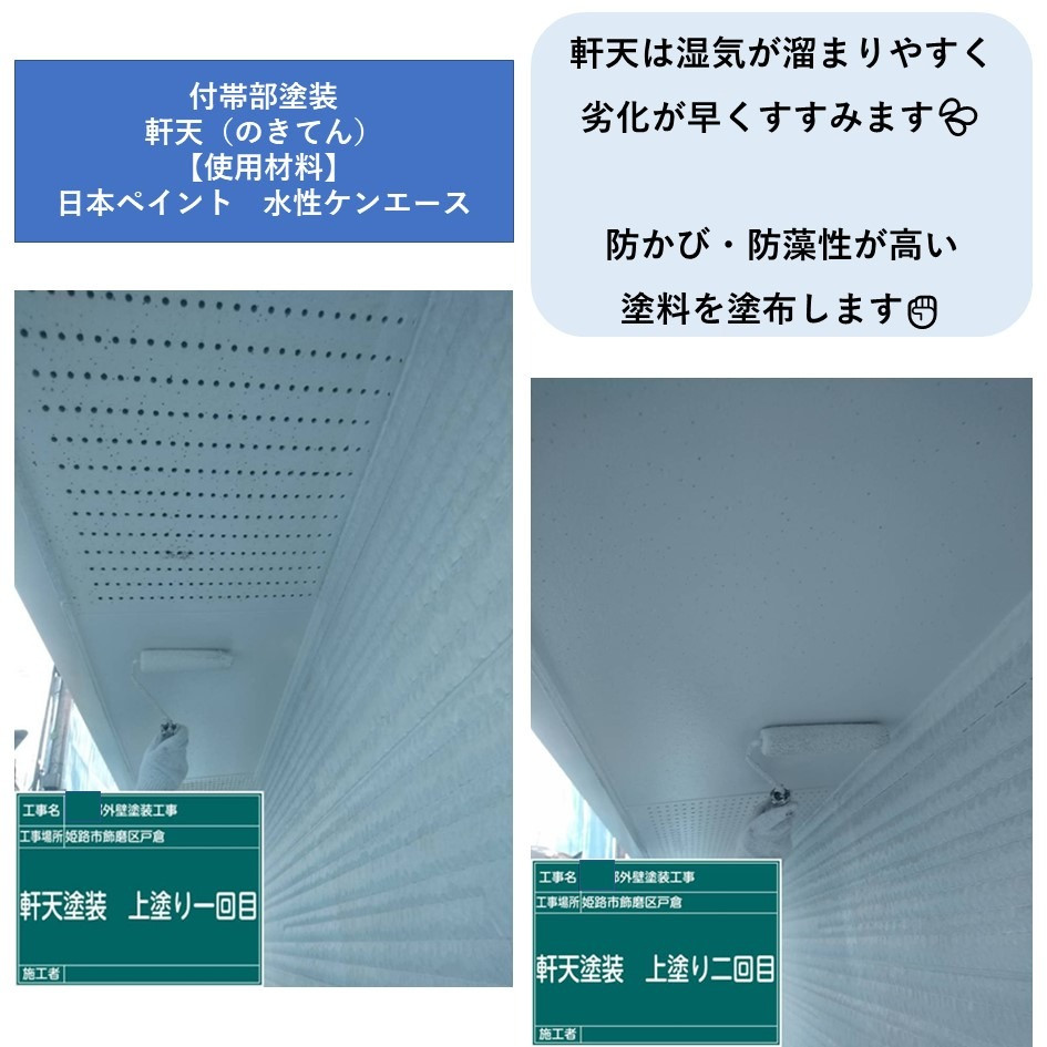 軒天塗装には「日本ペイント 水性ケンエース」を使用しました。