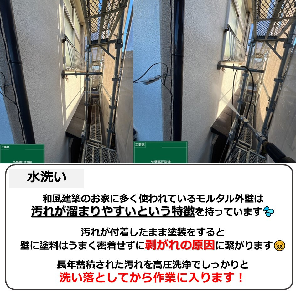 和風建築のお家に多く使われているモルタル外壁は汚れが溜まりやすいという特徴を持っています💦