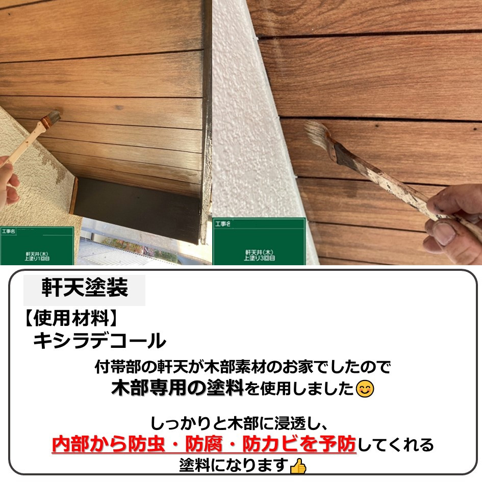 付帯部の軒天が木部素材のお家でしたので木部専用の「キシラデコール」を使用しました😊