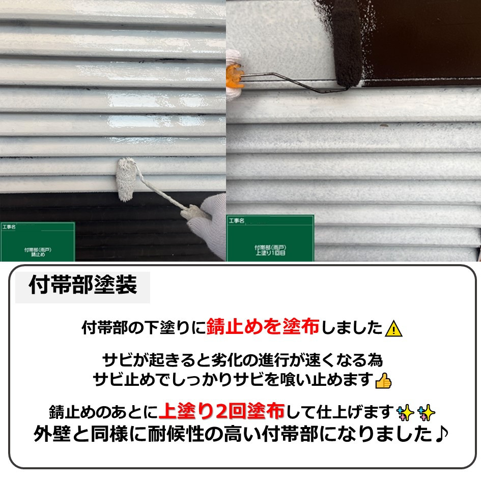 付帯部の下塗りに錆止めを塗布しました⚠️