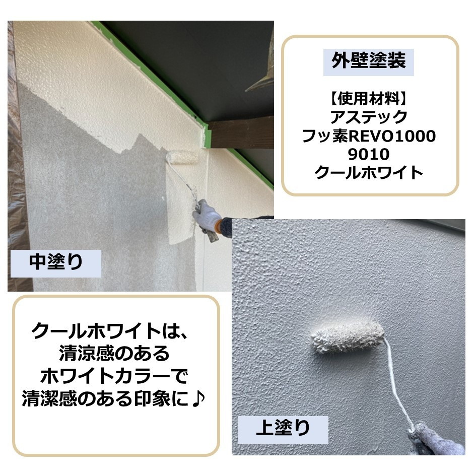 使用したクールホワイトの色は、清涼感のあるホワイトカラーで真っ白すぎず、爽やかな印象に♪