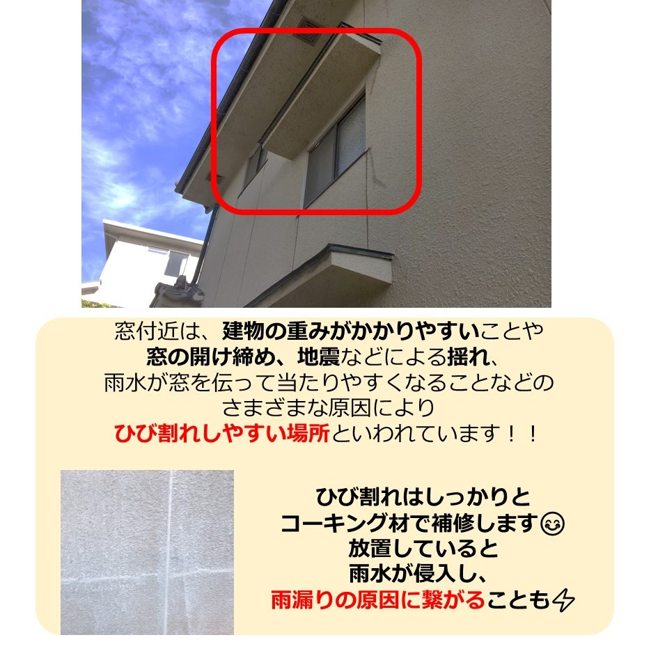 さまざまな原因により特にひび割れしやすい場所といわれています!!