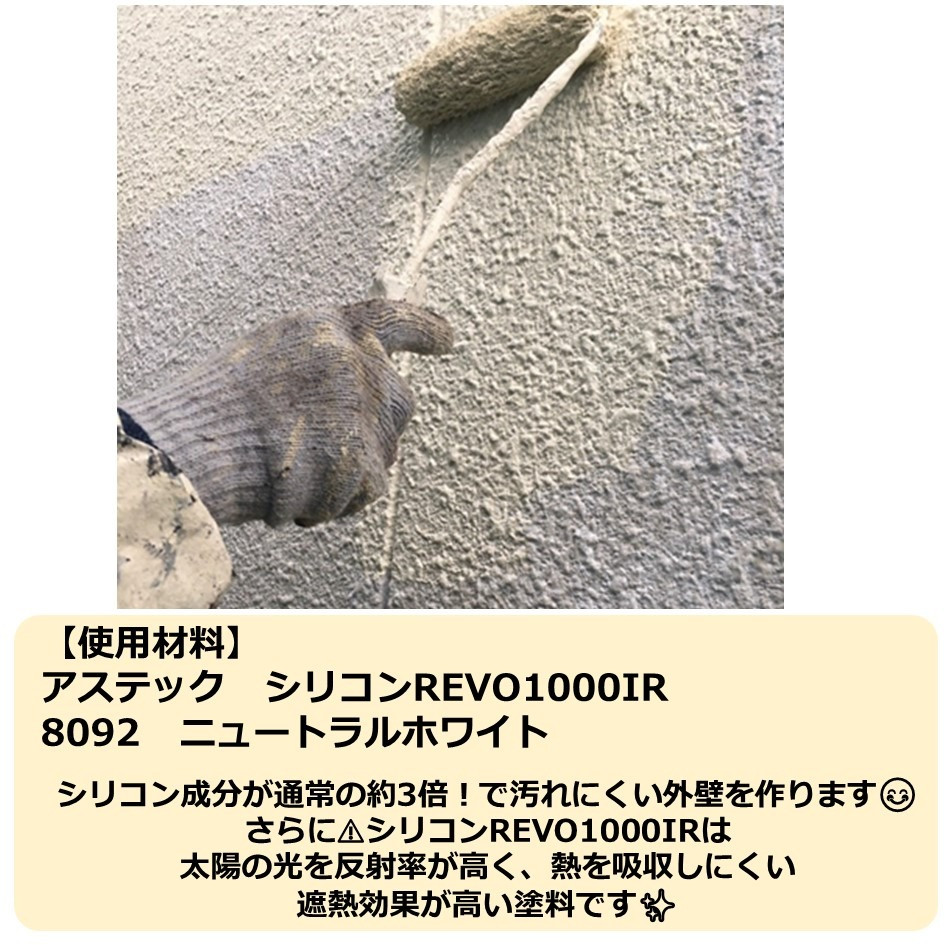 また、シリコンREVO1000IRは太陽の光を反射率が高く、熱を吸収しにくい遮熱効果が高い塗料です✨